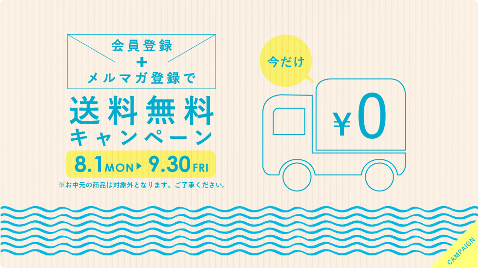 (内容)送料無料キャンペーン期間中のお買い物は、合計金額が5000円未満の場合も送料無料とさせていただきます。但し、お中元のギフト商品の商品は、適用外とさせていただきます。