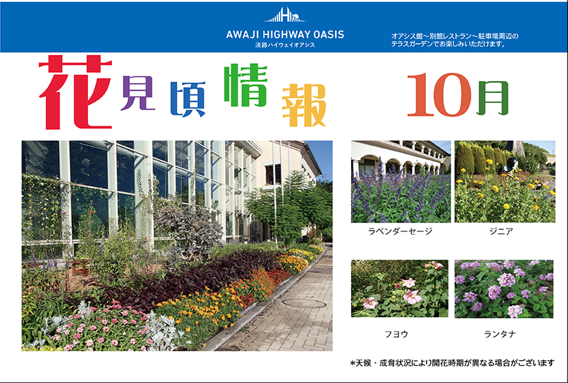 10月の見頃の花を紹介いたします。オアシス館周辺で、お楽しみください。