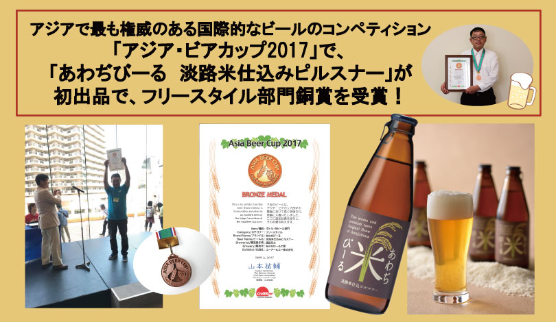 「アジア・ビアカップ2017」で「あわぢびーる 淡路米仕込みピルスナー」がフリースタイル部門銅賞を受賞しました!