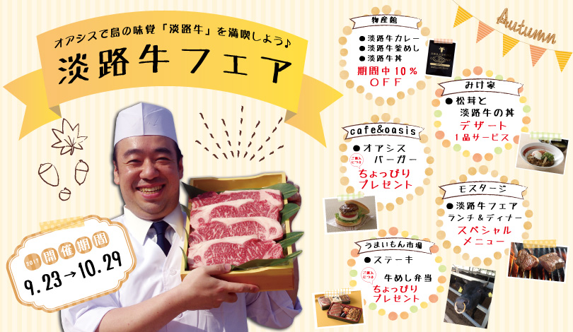 2017年9月23日(土)から10月29日(日)まで、淡路ハイウェイオアシス内の5施設(店舗)で実施します。