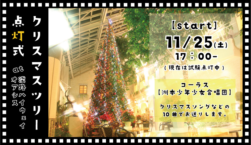 11/25(土)17:00より、淡路ハイウェイオアシスクリスマスツリー点灯式が行われます。